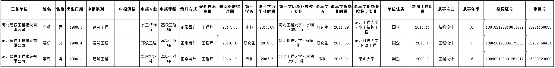 2020年供排水集團(tuán)申報(bào)職稱人員公示表